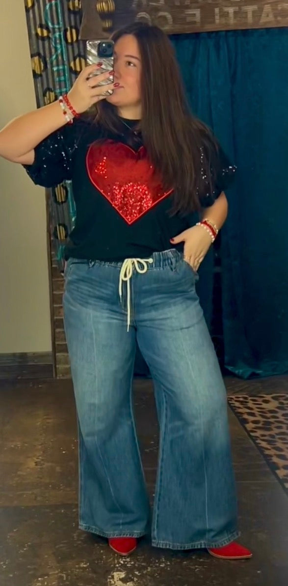 Make a statement in the SS Bubble Sleeve Top, featuring playful short bubble sleeves adorned with shimmering sequins and a bold red sequin heart front and center. This eye-catching piece blends sweet charm with standout sparkle, perfect for dressing up denim or pairing with your favorite skirt for a fun, flirty look. Designed to shine wherever you go ❤️✨