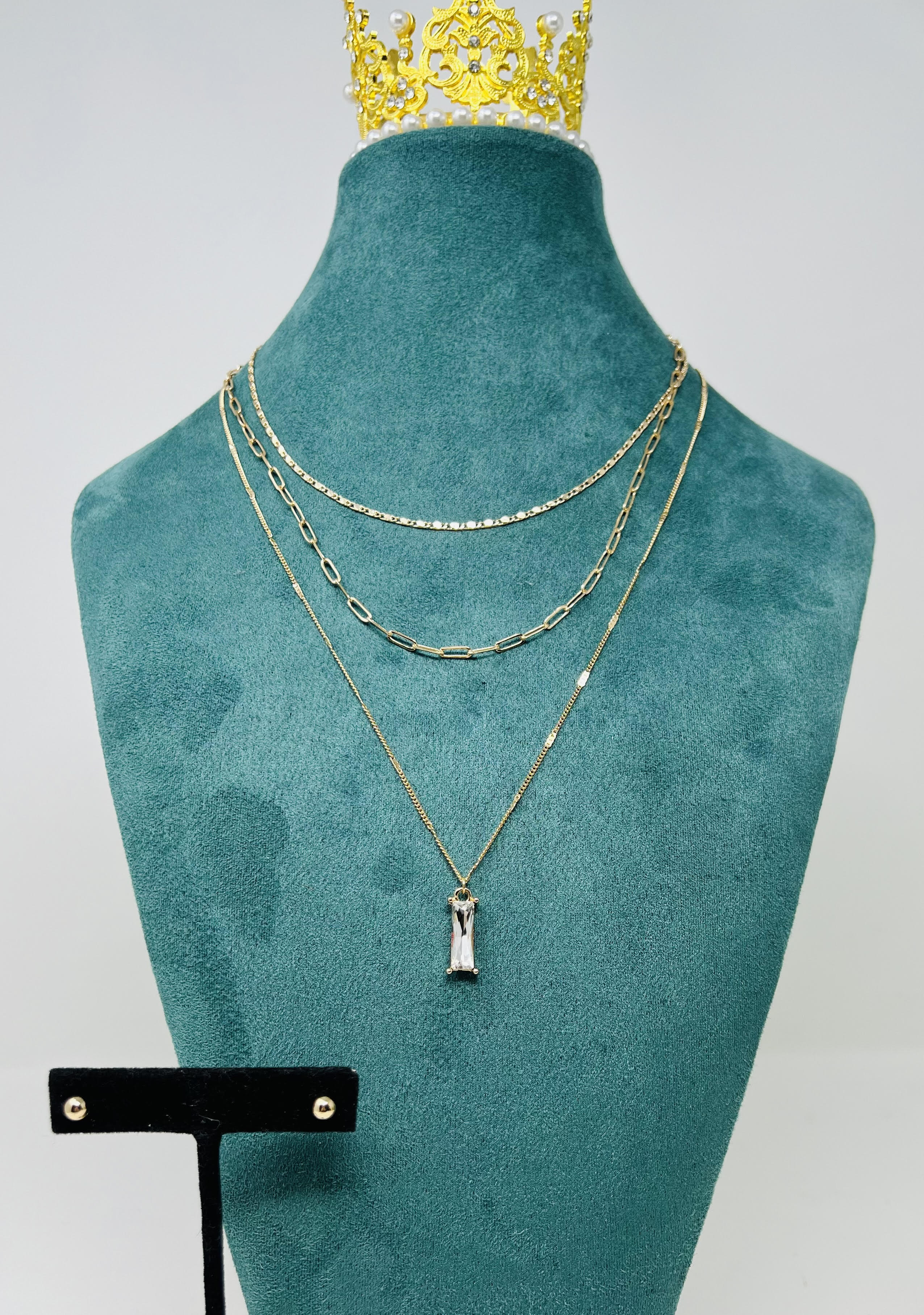 - 16-18" Necklace with Extender & Small Gold Crytal Stud Earrings