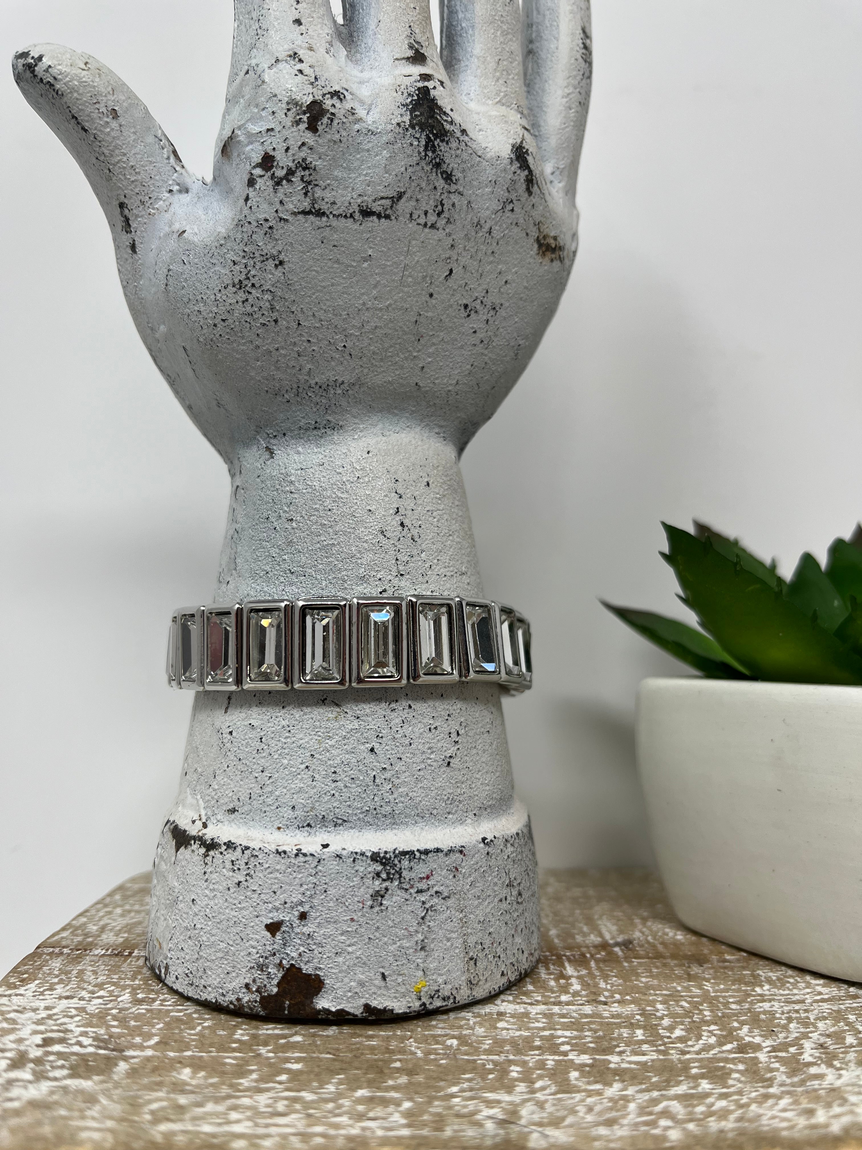 - Silver Stretch Bracelet with Clear Rectangle Crystal