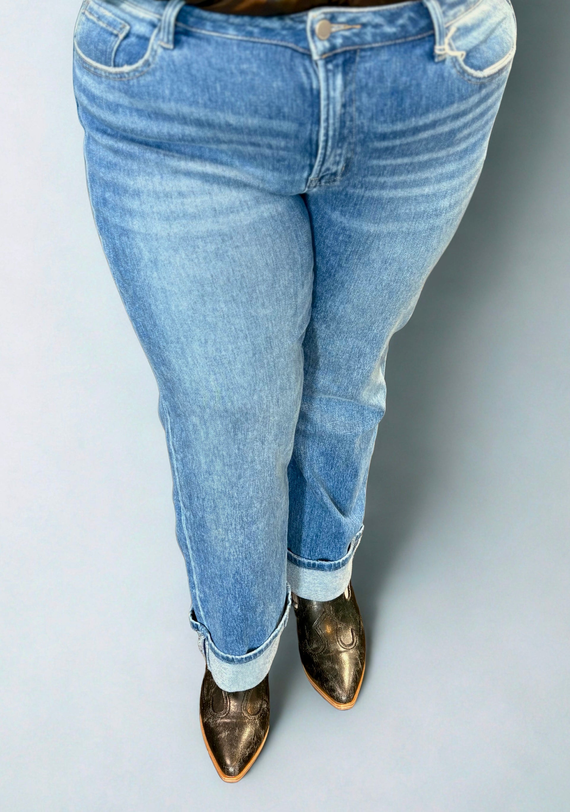 - With a high-rise and relaxed straight fit, these jeans combine comfort and style for a chic, all-day look.