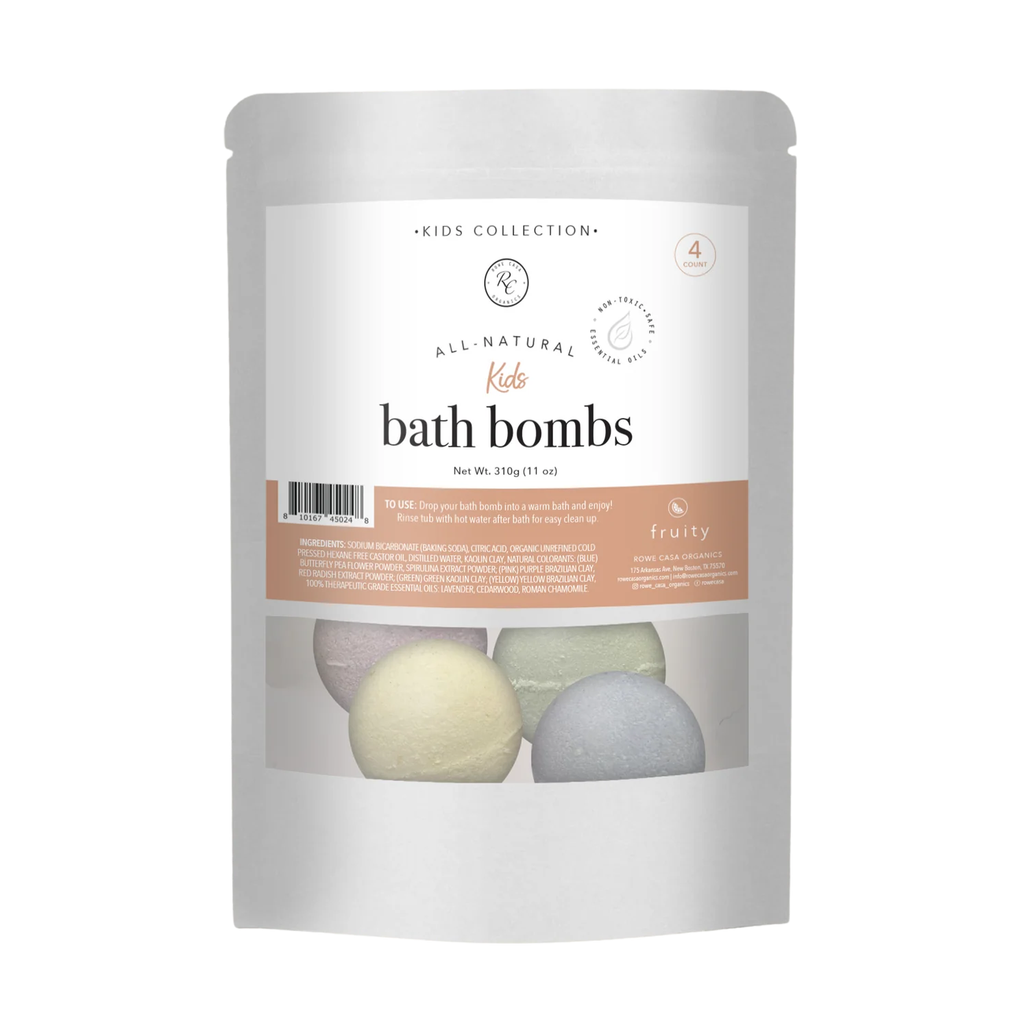 - Make bath time fun and exciting for kids without any toxic chemicals! Give your child the very best with these gentle and safe, all-natural bath bombs made with plant-based colorants, and 100% pure and natural therapeutic grade essential oils. They will love watching their colored bath bomb fizz and enjoy the fruity fun scent or be calmed down with our sweet dreams scent. 4 different colors are in each bag (Blue, Pink, Green & Yellow).