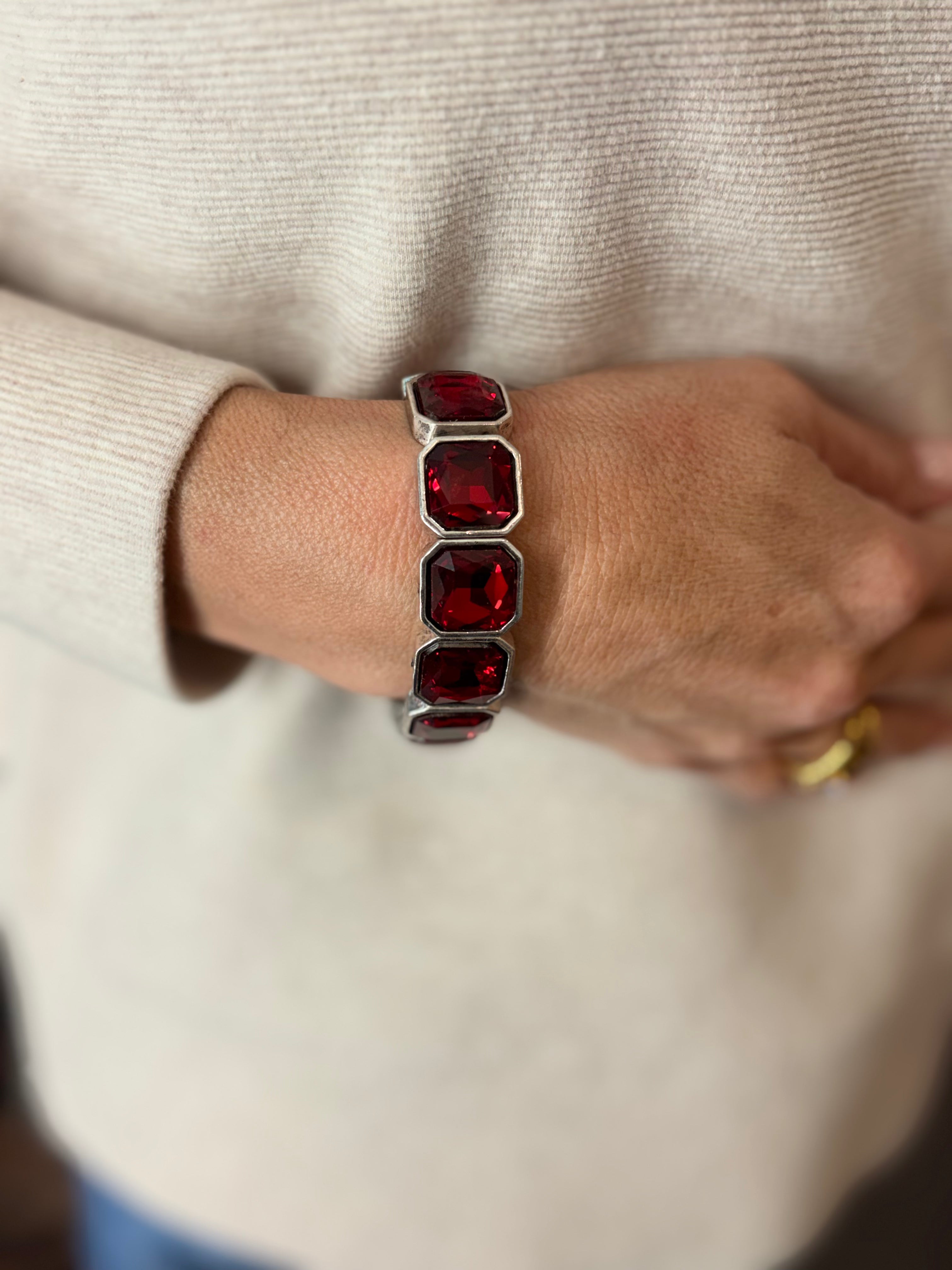 - Shine with understated elegance in the Radiance Band Bracelet. This stretch bangle features sparkling square rhinestones paired with sleek silver-plated accents for a refined, luminous look. Designed to catch the light from every angle, it adds a touch of sparkle to any outfit, day or night.