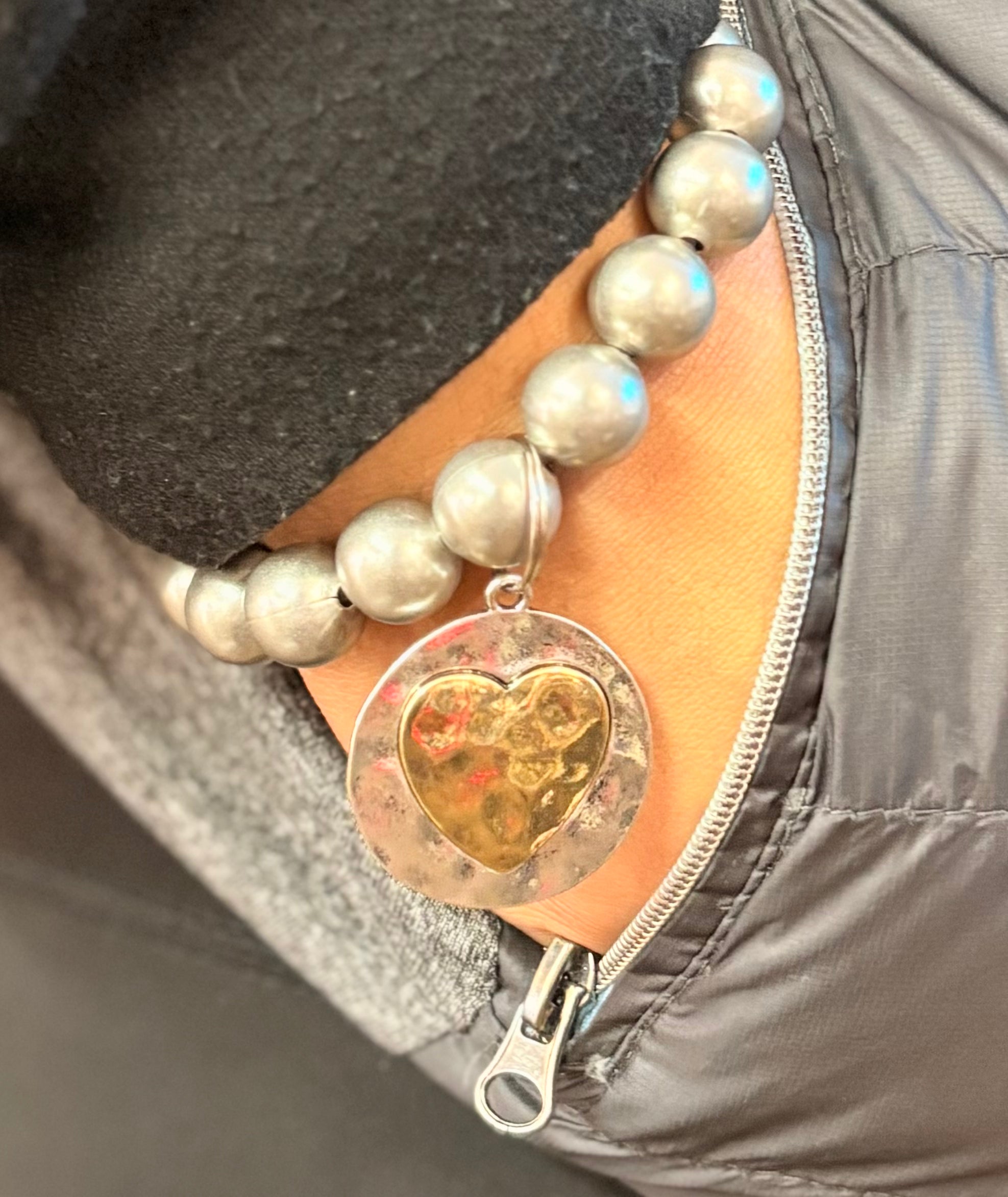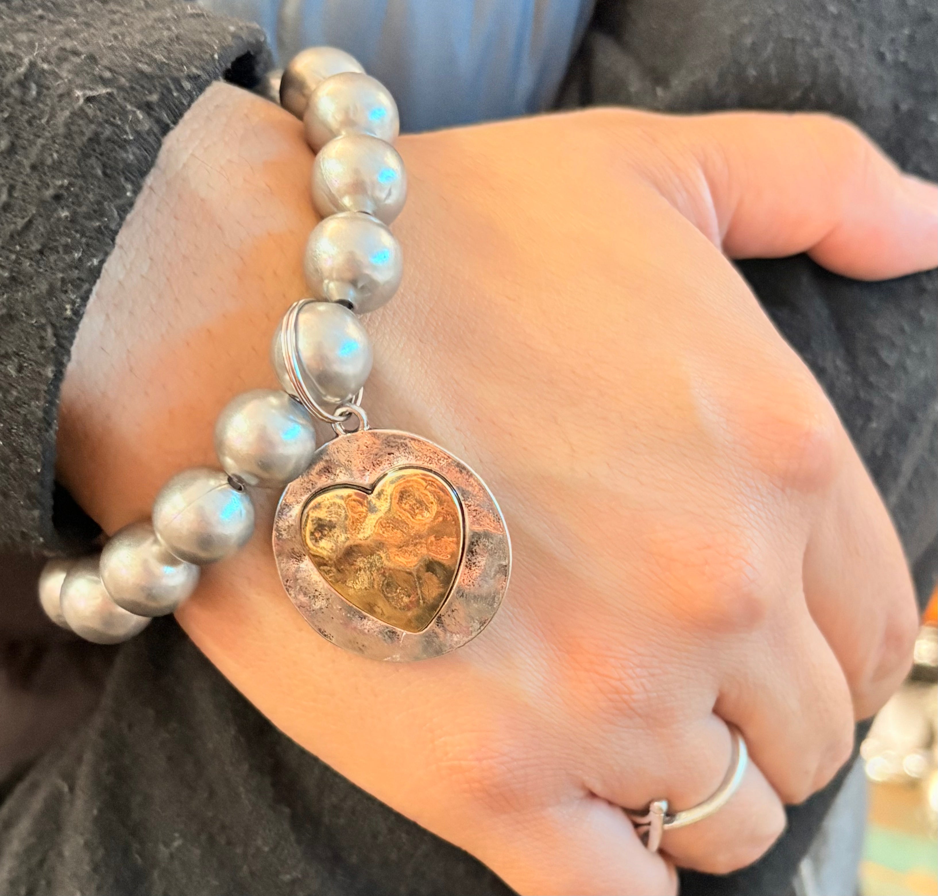 • Capture the spirit of the Southwest with the Desert Heart Bracelet. This beautifully designed stretch bracelet features Navajo-inspired beads in warm, earthy tones, centered by a radiant two-tone heart charm — silver plated with a golden heart at its core.